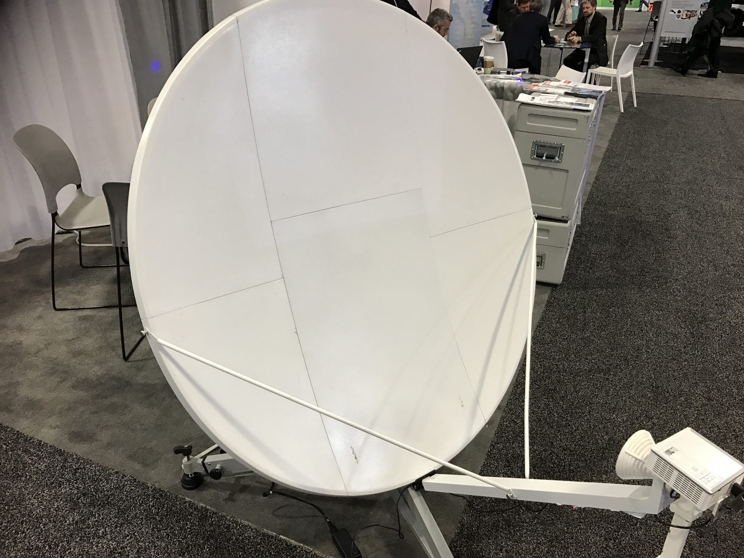 Итак, наиболее популярным цветом антенн-тарелок на выставке SATELLITE 2017 была, безусловно, тарелка цвета хаки. Вообще же, почти все тарелки там были либо темно-зеленые, либо бежевые (для пустынных применений) либо хаки. Почему так – об этом мы поговорим в следующей части этой серии.